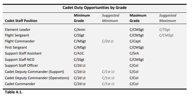 Another thing to consider: if the most qualified cadet you have for the role is only a C/SSgt, it's likely your squadron isn't large enough to warrant that position, anyway.