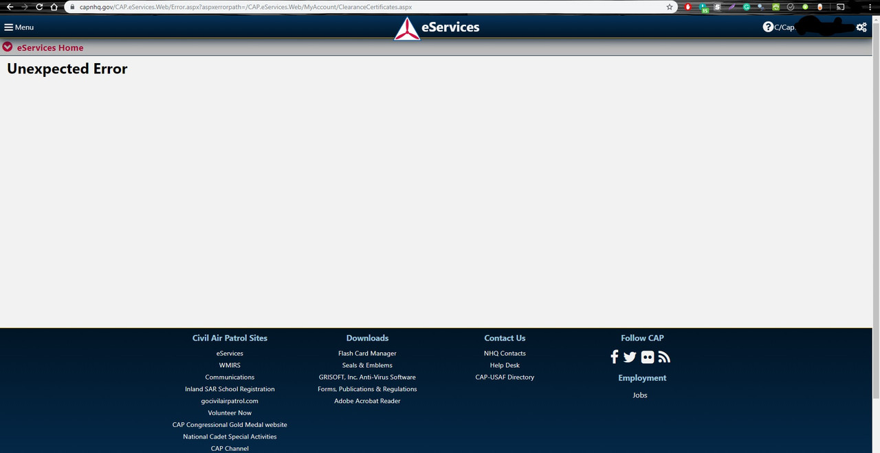 I click on my name and then click "Clearance Certificates" as referred to in the said link and the page comes up as "Unexpected Error"(see attachment). If this is where I am supposed to be able to enter them then I will email in as the link asks to, though I want to ensure I am doing this correctly first.