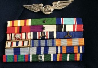 We have a member aproaching his 50 year mark with CAP.  We're looking at putting a shadow box together for a presentation.  His wife sent us a picture of his ribbions so we can start putting hte shadow box together, but I can't figure out what bottom 3 rows of ribbons are.  Any help with identifying the ribbons and where I might be able to find them to add to the shadow bow would be appreciated.